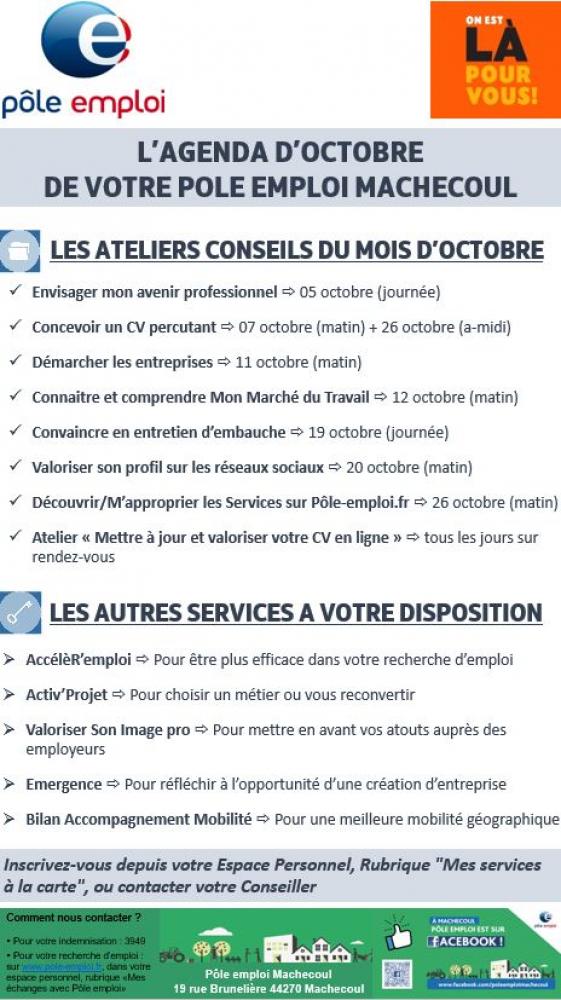 > Les Ateliers-Conseil d'OCTOBRE du PĂ´le emploi Machecoul