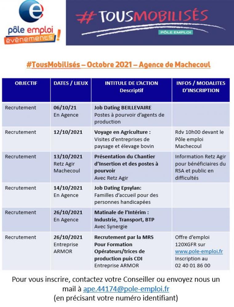 > Les Evènements Recrutement de votre Pôle emploi Machecoul en Octobre