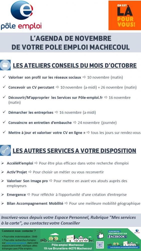 > Les Ateliers-Conseil de NOVEMBRE du PĂ´le emploi Machecoul