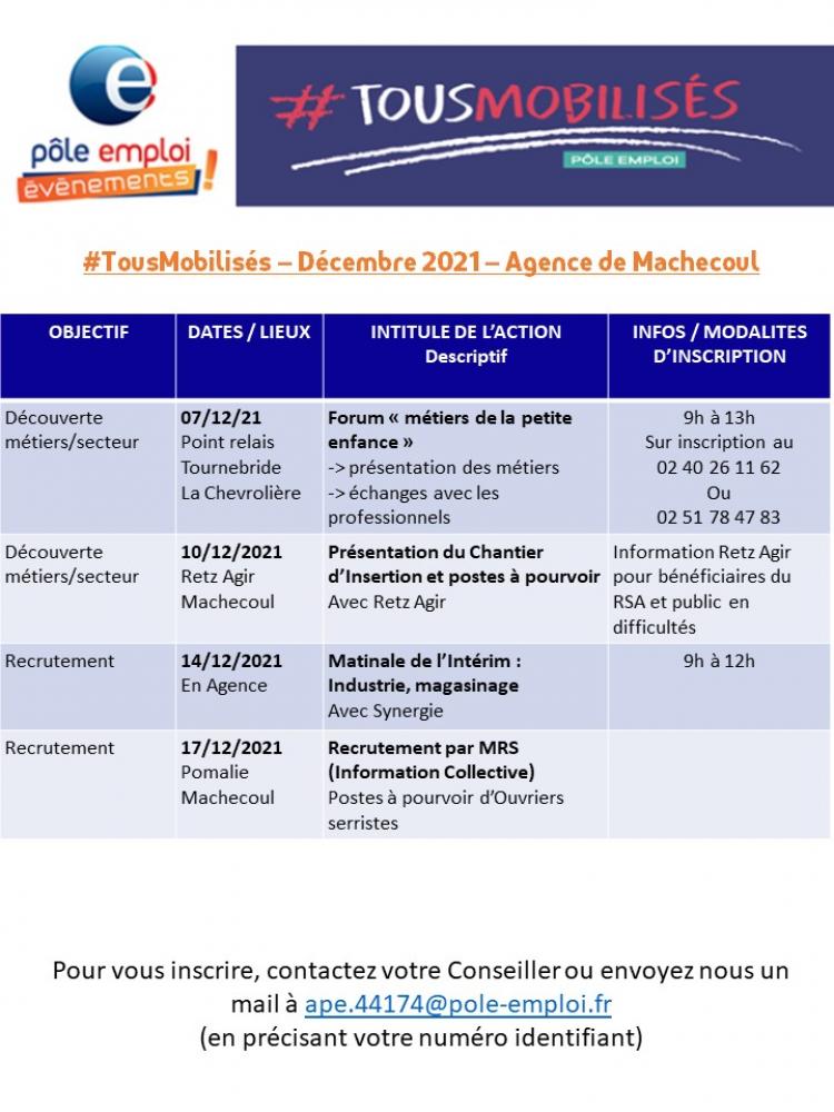 > Les Evènements Recrutement de votre Pôle emploi Machecoul en Décembre