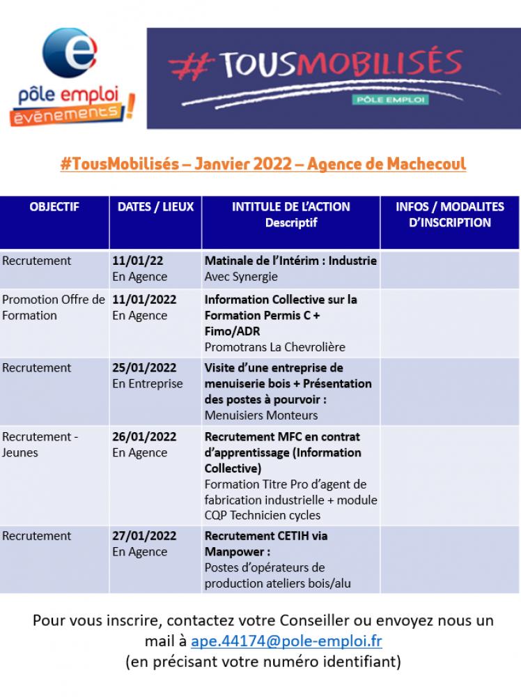 > Les Evènements Recrutement de votre Pôle emploi Machecoul en Janvier