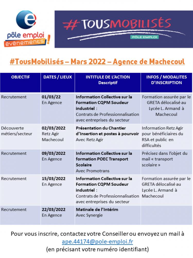 Les Evènements Recrutement de votre Pôle emploi Machecoul en Mars