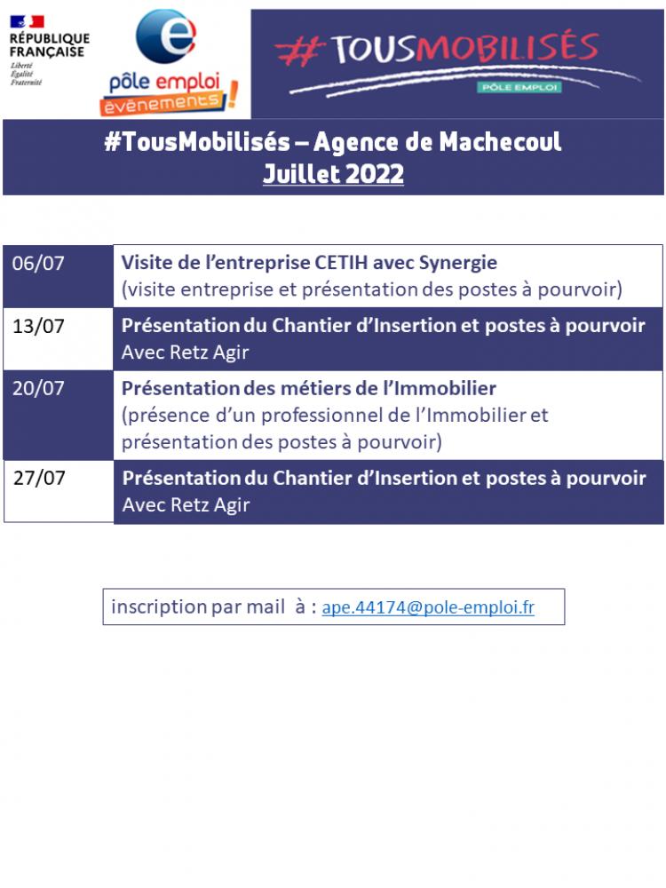 > Les Evènements Recrutement de votre Pôle emploi Machecoul en Juillet