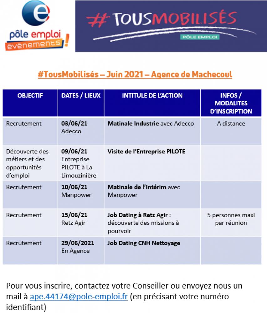 > Les Evènements Recrutement de votre Pôle emploi Machecoul en Juin