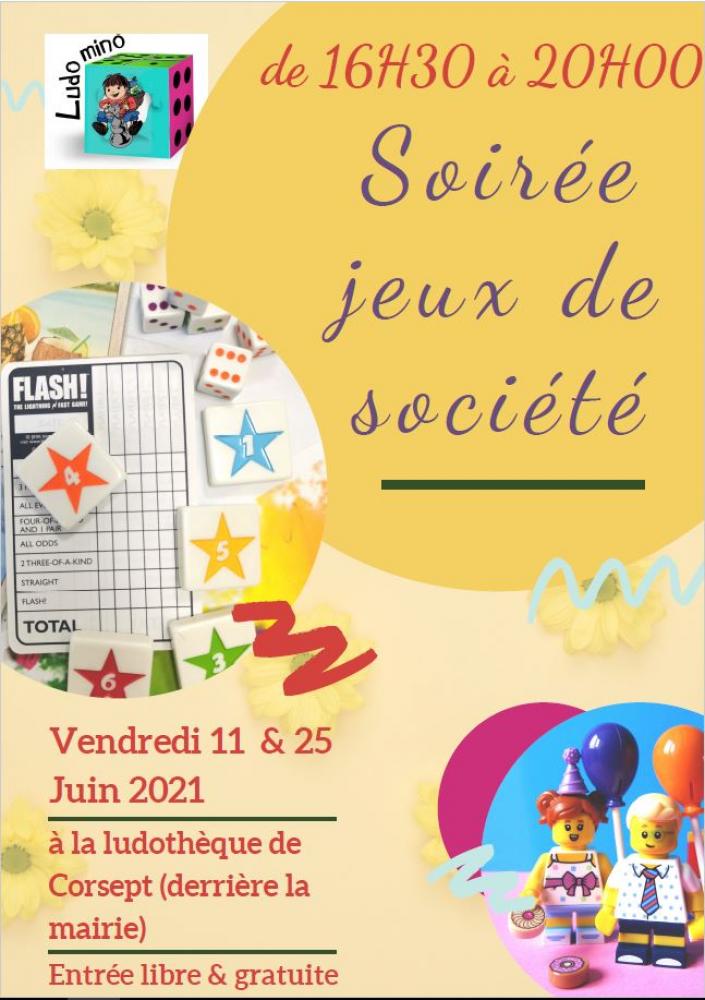 C'est le retour des soirées Jeux à la ludothèque Ludomino, située à Corsept.RDV les vendredis 11 & 25 Juin de 16h30 à 20h00